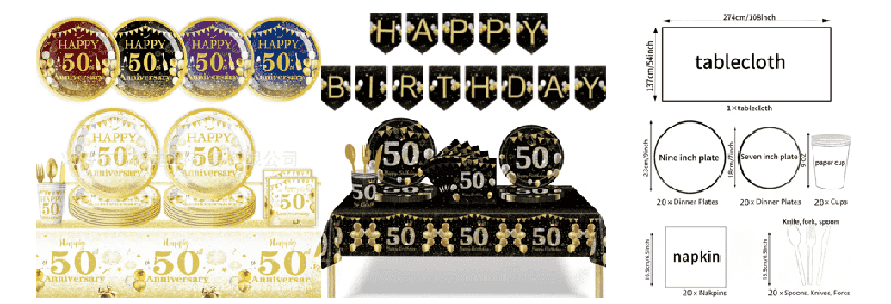 பேப்பர் பர்த்டே டாப்பர்: கேக் அலங்காரத்தின் முக்கிய அம்சமாக, பிரதான அட்டையானது "50 வயதுக்கு பிறந்தநாள் வாழ்த்துக்கள்" என்ற வார்த்தைகளை மையமாக எடுத்துக்கொள்கிறது, மேலும் முக்கிய கேக் அலங்காரத்துடன் பட்டாசுகள், நட்சத்திரங்கள், பிறந்தநாள் தொப்பி மற்றும் பிற வடிவங்களுடன் பொருந்துகிறது. தடிமனான அட்டைப் பெட்டியால் செய்யப்பட்ட மற்றும் திடமான மூங்கில் குச்சிகளால் பொருத்தப்பட்ட "50" சுற்று, மங்களகரமான மேகங்கள், கிரீடம் மற்றும் பிற மினி கார்டுகள், கப்கேக்குகள் மற்றும் இனிப்பு அட்டவணைகள், நேர்த்தியான விவரங்களுடன் அலங்கரிக்கப்படலாம்.