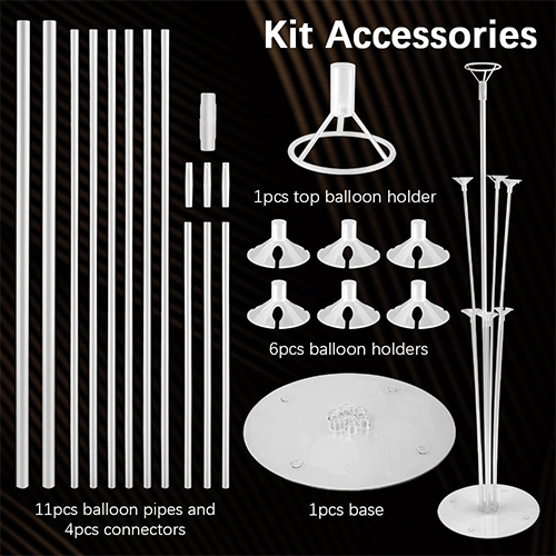 பலூன் மாடி நிலைப்பாடு ஒரு அடிப்படை, பல கப், வெவ்வேறு நீளங்களின் பிளாஸ்டிக் குழாய்கள், மூட்டுகள் மற்றும் ஒரு சிறந்த எரிவாயு கிளப் ஆகியவற்றைக் கொண்டுள்ளது. சட்டசபைக்குப் பிறகு, டெஸ்க்டாப் அல்லது தரை பலூன் அலங்கார மாதிரியை உருவாக்க பலூனை சரிசெய்யலாம், இது விருந்து, திருமண, கொண்டாட்டம் மற்றும் பிற காட்சி தளவமைப்புக்கு ஏற்றது. முப்பரிமாண மற்றும் அழகான பலூன் சூட்டை உருவாக்க பலூன் ஸ்டாண்ட் வசதியானது.