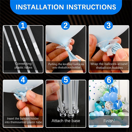 கீழே உள்ள படம் 2 மற்றும் படம் 3 இல் காட்டப்பட்டுள்ளபடி, முதலில் பல்வேறு பாகங்கள் பலூன் மாடி வகைகளாக நிற்கவும், ஒவ்வொரு துணை சட்டசபை நிலையை தீர்மானிக்கவும். பின்னர் பிளாஸ்டிக் குழாய் கூட்டு வழியாக இணைக்கப்பட்டுள்ளது, பின்னர் முடிச்சு பலூன் பலூன் ஆதரவின் துளைக்குள் வைக்கப்பட்டு, பலூன் முடிச்சு முறுக்கப்பட்டு மூட்டின் மற்ற துளைக்குள் இழுக்கப்பட்டு, இறுதியாக பலூன் ஆதரவு குழாயுடன் இணைக்கப்பட்டுள்ளது, பின்னர் குழாயின் மறு முனை பசை கொண்டு அடித்தளத்துடன் இணைக்கப்பட்டுள்ளது. ஒரு அழகான பலூன் ஸ்டாண்ட் செய்யப்படுகிறது. மேலும், கூடியிருந்த பலூன் கயிறு கம்பத்தையும் எளிதில் பிரிக்கலாம், மேலும் குழந்தைகளுக்கான பலூன் ஸ்டாண்ட் ஹோல்டர் ஸ்டிக் பொம்மையாகப் பயன்படுத்தலாம், ஒரு துருவத்தின் பல பயன்பாடுகளையும் நெகிழ்வான பயன்பாட்டையும் உணர்ந்து கொள்ளலாம். கூடுதலாக, கூடியிருந்த பலூன் மாடி நிலைப்பாட்டை வண்ண விளக்குகளுடன் பயன்படுத்தலாம். நீங்கள் வண்ண விளக்குகளை விரும்பினால், உங்கள் செயல்பாடுகளை மேலும் வண்ணமயமாக்க பலூன் மாடி ஸ்டாண்ட் வாங்கும் போது வண்ண விளக்குகளை வாங்கலாம்!