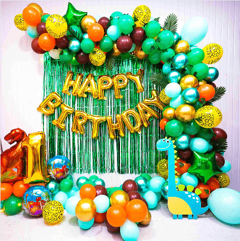 பிறந்தநாள் விருந்து பலூன் வளைவை தீம் பேனர் பேனர், குஞ்சங்கள், படலம் பலூன் நெடுவரிசைகள், மேஜை துணி, பின்னணி போன்றவற்றுடன் பொருத்தலாம்.