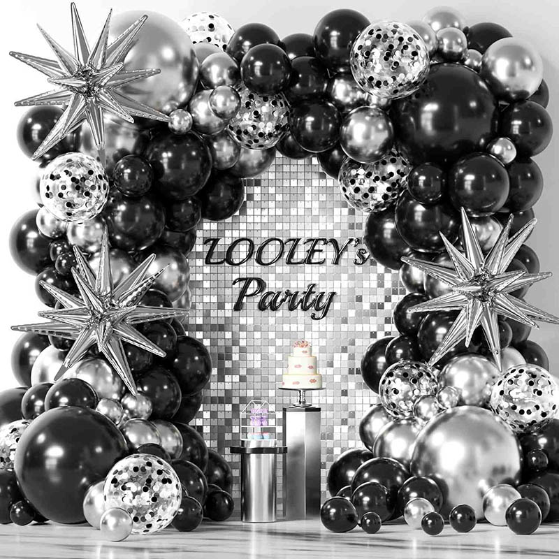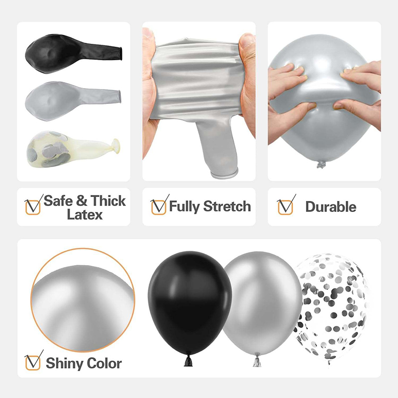 4.தனியார் மற்றும் பிரத்தியேக தனிப்பயனாக்கப்பட்ட கருப்பு மற்றும் வெள்ளி பலூன்கள் மாலை கருவிகள்.