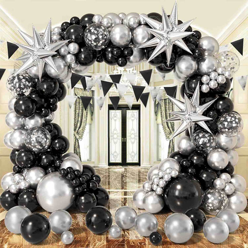 கருப்பு மற்றும் வெள்ளி பலூன்கள் கார்லண்ட் கிட்கள் |