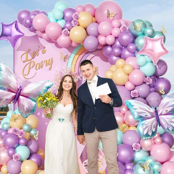 பட்டாம்பூச்சி பலூன் ஆர்ச் கிட்: ஆர்ச் கிட் வண்ணமயமானது மற்றும் கண்ணைக் கவரும், இது பல்வேறு படல பலூன்கள் மற்றும் லேடெக்ஸ் பலூன்களால் ஆனது. அதை ஒழுங்கமைக்கும்போது, பேட்டர்ன்கள் மற்றும் வித்தியாசமான உரையுடன் பின்னணிப் பலகையைச் சேர்த்து, அதைச் சுற்றி பலூன்களைச் சுற்றி வைக்கவும். நிகழ்வின் சூழ்நிலையை உருவாக்கியவர். அதன் முன் புகைப்படம் எடுப்பது மிகவும் அழகாக இருக்கும்.