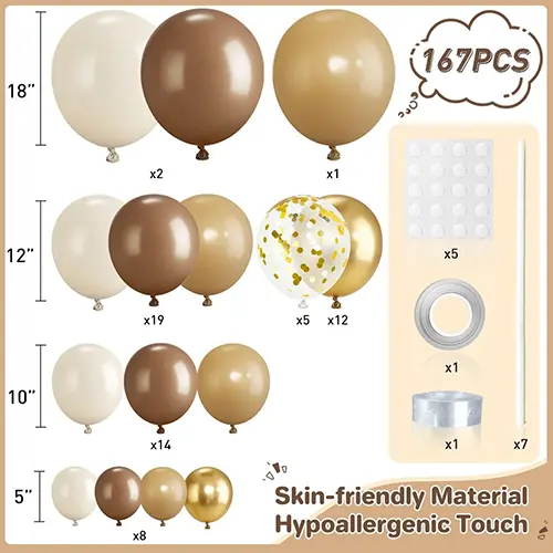 · உள்ளடக்கப்பட்ட கூறுகள்: முன்-விகிதாச்சார நிலையான ஒட்டக-வண்ண பலூன்கள் (5 சாய்வு நிழல்கள் கொண்டவை), அதிக வலிமை கொண்ட ஆர்ச் பேஸ், தொழில்முறை இணைப்பிகள், பசை-புள்ளி கையுறைகள் மற்றும் எளிமைப்படுத்தப்பட்ட நிறுவல் வழிகாட்டி.