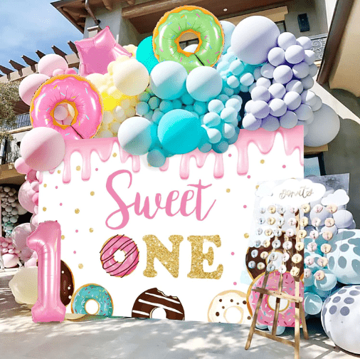 ஸ்வீட் ட்ரீம் சாக்லேட் கலர் மற்றும் க்யூட் லாலிபாப் வடிவத்துடன் கூடிய கேண்டி தீம் பலூன் கார்லண்ட் கிட், முக்கிய வடிவமைப்பு கூறுகளாக, ஒட்டுமொத்த ஸ்டைல் கலகலப்பாகவும் இனிமையாகவும் இருக்கிறது.