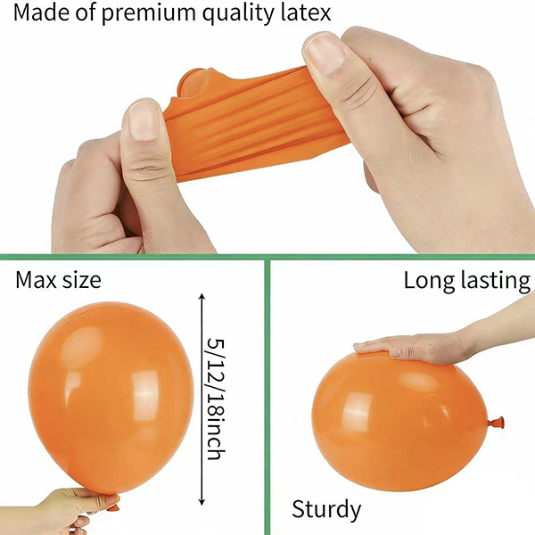 நச்சுத்தன்மையற்றது மற்றும் பாதுகாப்பானது, அவை ஹீலியம் மற்றும் காற்றை நிரப்புவதற்கு ஏற்றவை, இது எல்லா நிகழ்வுகளுக்கும் சிறந்ததாக இருக்கும். ஊதப்பட்டவுடன், பலூன் நீண்ட காலத்திற்கு அவற்றின் வடிவத்தையும் மிதப்பையும் பராமரிக்கிறது, உங்கள் அலங்காரங்கள் கொண்டாட்டம் முழுவதும் துடிப்புடன் இருப்பதை உறுதி செய்கிறது.