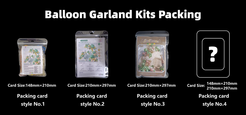 பலூன் ஆர்ச் கிட் பேக்கிங்கிற்கு, அது உங்கள் விற்பனை சந்தர்ப்பத்தைப் பொறுத்தது. நீங்கள் அதை ஆன்லைனில் விற்றால் கீழே உள்ள பேக்கிங் ஸ்டைல் எண்.1 மற்றும் வெற்றிடமானது உங்களுக்கு நன்றாக இருக்கும், இது ஷிப்பிங் இடத்தையும் ஷிப்பிங் செலவையும் சேமிக்க உதவும். ஆனால் நீங்கள் தனிப்பயனாக்கப்பட்ட வண்ணமயமான பலூன் ஆர்ச் கிட்களை கடையில் விற்றால், கீழே உள்ள பேக்கிங் ஸ்டைல் எண். 2 அல்லது அதற்கு மேற்பட்ட பெரிய பேக்கிங் பேக் உங்களுக்கு ஏற்றதாக இருக்கும், வெவ்வேறு ஸ்டைல்கள் கொண்ட பெரிய பேக்கிங் பேக், வண்ணமயமான பலூன் ஆர்ச் கிட் கார்டுகள் உங்கள் வாடிக்கையாளர்களைக் காட்ட சிறந்த முறையில் தயாரிப்புகளைக் காண்பிக்கும். ஆனால் உங்கள் சொந்த வழி பேக்கிங் பாணியை நீங்கள் தனிப்பயனாக்க விரும்பினால், அதுவும் சரி, உங்கள் தேவைகளை எங்களிடம் கூறலாம் , எங்கள் வடிவமைப்பாளர் அதை உங்களுக்காகச் செய்வார். அல்லது நீங்கள் வடிவமைப்பை உருவாக்கி, இறுதி வடிவமைப்பை எங்களுக்கு அனுப்புங்கள், எங்கள் பணியாளர்கள் உங்கள் தேவைகளின் அடிப்படையில் உயர்தர வண்ணமயமான பலூன் ஆர்ச் கிட் அலங்காரங்களைச் செய்வார்கள்.