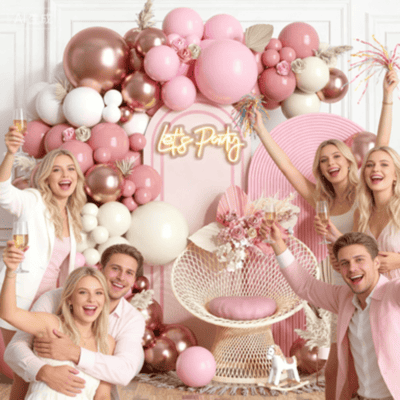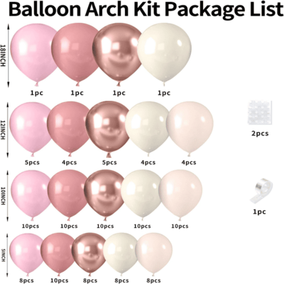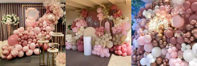 தூசி நிறைந்த இளஞ்சிவப்பு பலூன் சிறிய கிட்:இந்த சிறிய கிட் 50 முதல் 80 பிசிக்கள் பிங்க் பலூன்களால் ஆனது. தொகுப்பின் அடுக்கு விளைவை அதிகரிக்க, நீங்கள் வெள்ளை, பாதாமி மற்றும் வெளிப்படையான பலூன்களையும் சேர்க்கலாம். அவற்றை நிரப்ப ஹீலியத்தைப் பயன்படுத்தவும், பின்னர் நீங்கள் ஒரு ரிப்பனைப் பயன்படுத்தி கட்டி, பின்னர் அவற்றை காற்றில் மிதக்க விடலாம்.