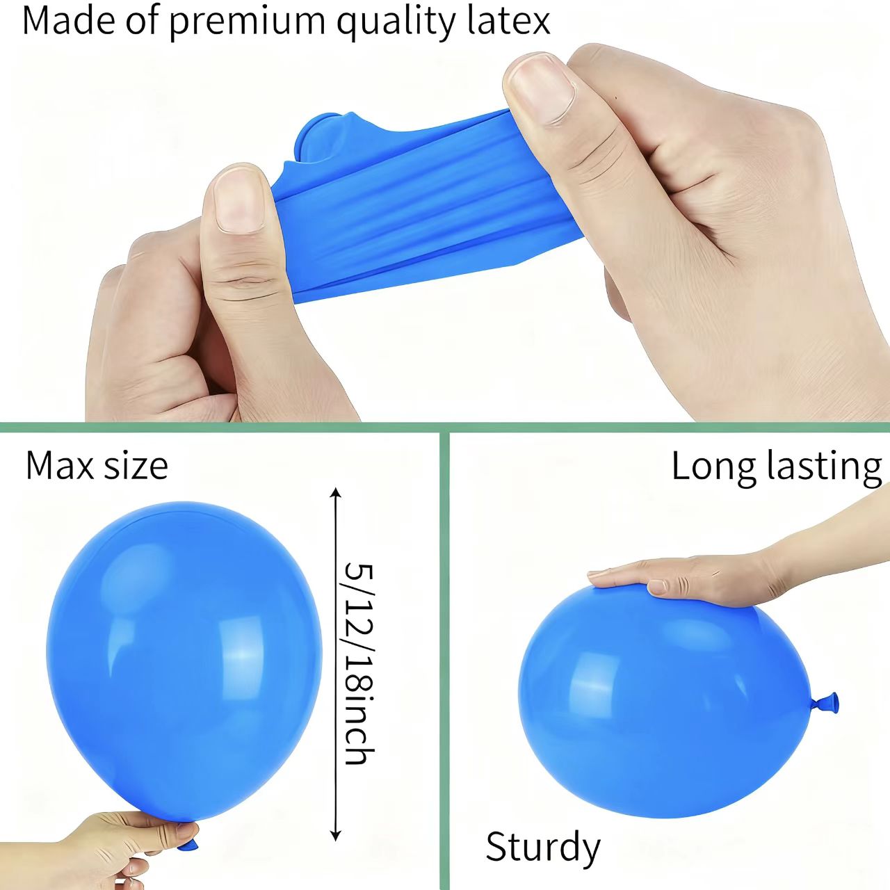 மொத்த கால்பந்து பலூன் ஆர்ச் கிட்களில் உள்ள அனைத்து பலூன்களும் தடிமனான மற்றும் மீள்தன்மை கொண்ட இயற்கை ரப்பர் லேடெக்ஸால் செய்யப்பட்டவை, அவை பாப் செய்ய எளிதானது அல்ல. அவை நிலையான விருப்பங்களை விட அதிக ஆயுளை வழங்குகின்றன.