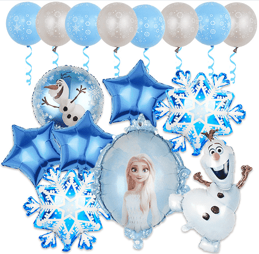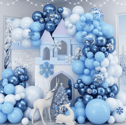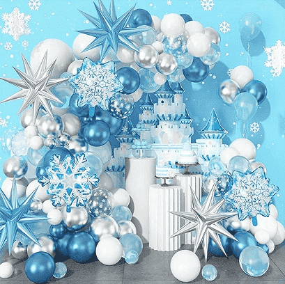 3.உறைந்த பலூன் மாலை கருவிகள்பொதுவாக பல்வேறு அளவுகளைக் கொண்டிருக்கும்உறைந்த பலூன்கள், தனித்துவமான படலம் பலூன்கள், பொருந்தக்கூடிய அலங்கார ரிப்பன்கள், ஊதுபத்திகள், குறிக்கப்படாத பசை புள்ளிகள், நிறுவல் டைகள் மற்றும் பிற பாகங்கள் ஒரே நிறுத்தத்தில் தளவமைப்புத் தேவைகளைப் பூர்த்தி செய்யும். அனைத்து கூறுகளும் பாதுகாப்பான மற்றும் சுற்றுச்சூழலுக்கு உகந்த பொருட்களால் ஆனவை, குழந்தைகளின் செயல்பாட்டுக் காட்சிகளுக்கு முழுமையாக மாற்றியமைக்கப்படுகின்றன. உடையில் உள்ள பலூன் முறை கவனமாக பொருந்துகிறது, உறைந்திருக்கும் உன்னதமான பாத்திரப் படத்தை கனவான பனி மற்றும் பனி கூறுகளுடன் இணைக்கிறது. வண்ணங்கள் நீலம், வெள்ளை மற்றும் வெள்ளி, ஒரு தூய மற்றும் காதல் மாய சூழ்நிலையை உருவாக்கும்.