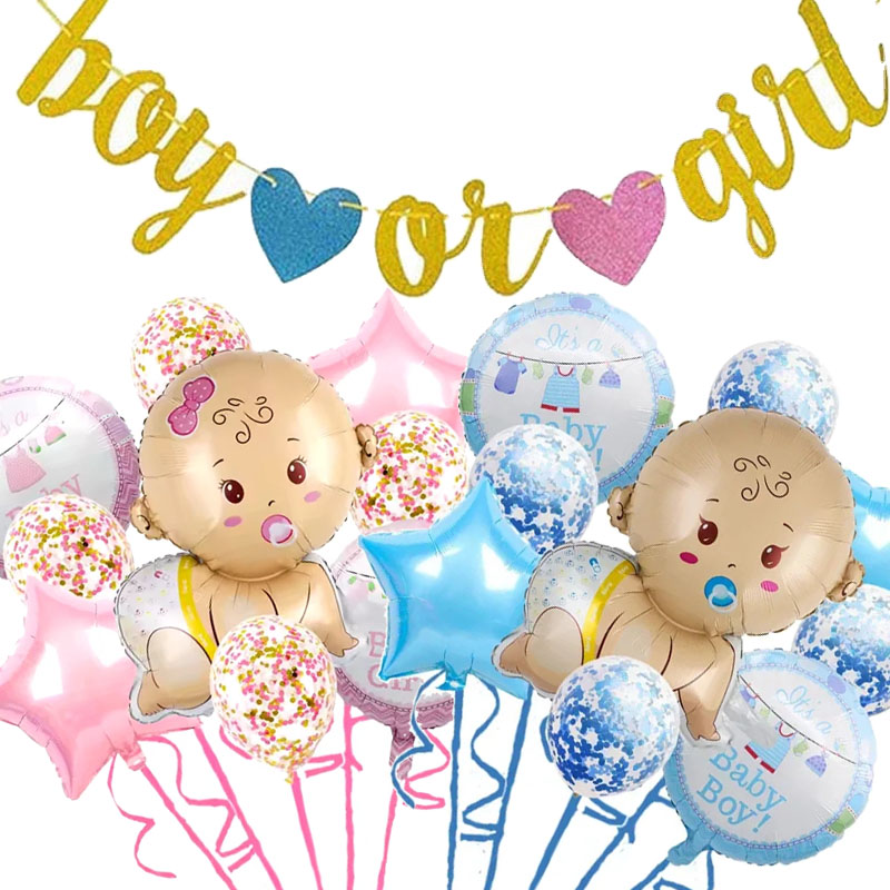 2. சிறிய தொகுப்பு விற்பனை:பாலினம் தீம் படலம் பலூன் தொகுப்பை வெளிப்படுத்துகிறது. பாலினத்தை வெளிப்படுத்தும் படலம் பலூன்களுக்கான பொருந்தக்கூடிய பலூன் தொகுப்புகளையும் நாங்கள் தயாரிக்கிறோம். இந்த தொகுப்பில் வழக்கமாக சிறுவர்கள் அல்லது சிறுமிகளுக்கான கார்ட்டூன் படலம் பலூன், 18 அங்குல சுற்று படலம் பலூன்கள், 18 அங்குல ஸ்டார் ஃபாயில் பலூன்கள் மற்றும் 12 அங்குல வரிசைப்படுத்தப்பட்ட லேடெக்ஸ் பலூன்கள் ஆகியவை அடங்கும். ஒவ்வொரு வாடிக்கையாளரின் தேவைகளையும் பூர்த்தி செய்ய வாடிக்கையாளரின் தேவைகளுக்கு ஏற்ப எங்கள் தொகுப்பை தனிப்பயனாக்கலாம். இந்த தொகுப்பு எல்லா சந்தர்ப்பங்களுக்கும் சரியானது, இது ஒரு குழந்தை கிறிஸ்டிங் பார்ட்டி அல்லது செக்ஸ் வெளிப்படுத்தும் விருந்து என்றாலும், புதிதாகக் கொண்டாடும் ஒரு விருந்துக்கு இது வேடிக்கையாக இருக்கும்.
