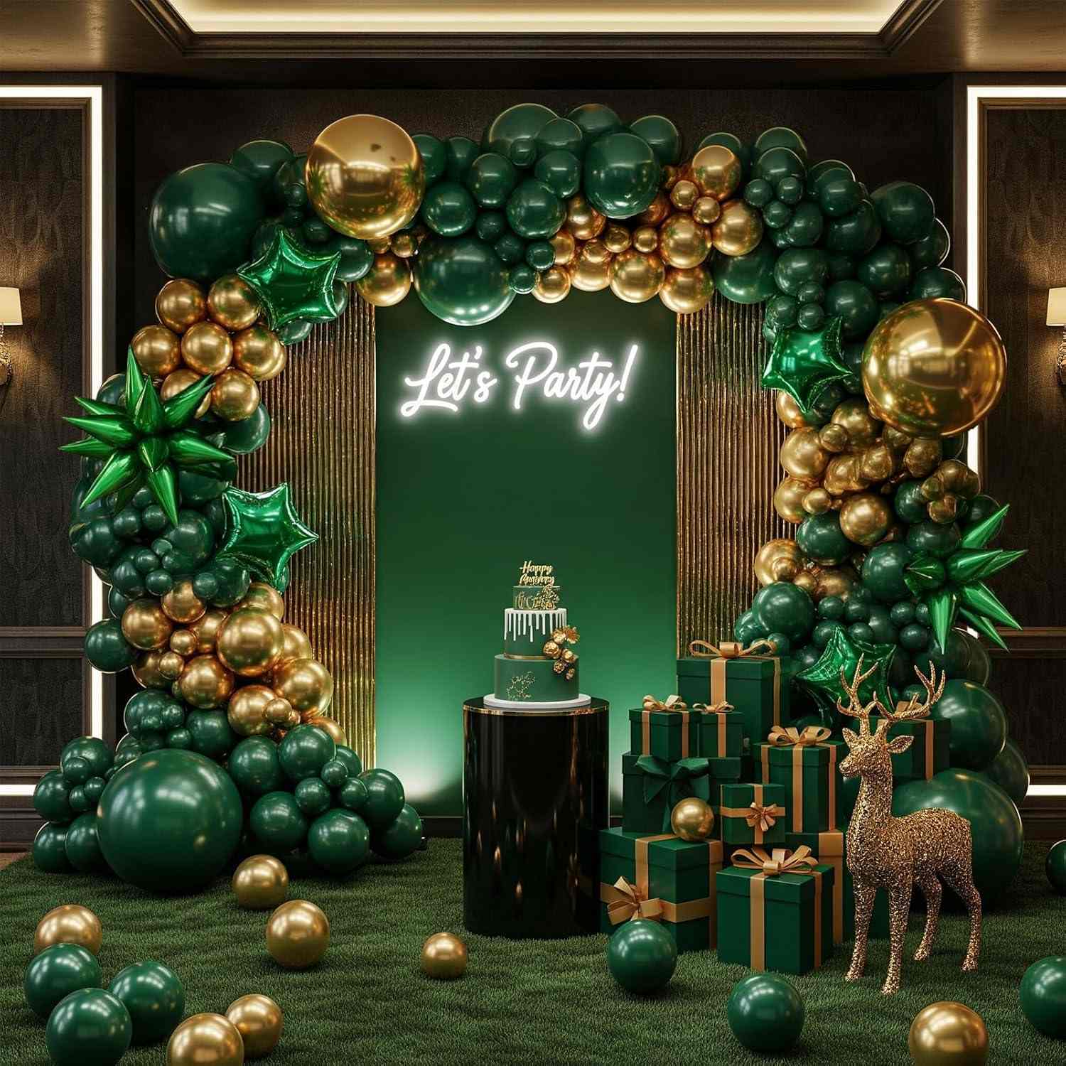 3.பச்சை மற்றும் தங்க பிறந்தநாள் பலூன் ஆர்ச்