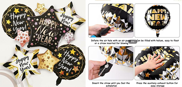 புத்தாண்டு வாழ்த்து படல பலூன்கள் அனைத்தும் ஹீலியம்-ஆதரவு மற்றும் மீண்டும் பயன்படுத்தக்கூடியவை: பலூன் செட் ஹீலியம்-ஆதரவு மற்றும் புத்தாண்டு ஈவ் அலங்காரங்களுக்கான சரியான பின்னணியாகும். பணவீக்கத்திற்குப் பிறகு, மைலார் ஃபாயில் புத்தாண்டு பலூனின் திறப்பைக் கிள்ளினால், பிசின் தானாகவே சீல் வைக்கப்படும். இது ஊதுவதற்கும் முத்திரையிடுவதற்கும் எளிதானது, ஊதுவதற்கும் ஊதுவதற்கும் எளிதானது, மேலும் நீண்ட நேரம் மிதக்கக்கூடியது. நீங்கள் அவற்றை வீட்டு வாசலில் அல்லது கூரைகள் மற்றும் சுவர்களில் வைக்கலாம்.