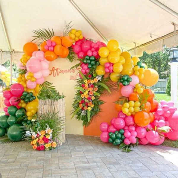 இந்த ஹவாய் பலூன் கார்லண்ட் கிட் வண்ணமயமான லேடெக்ஸ் பலூன்களால் ஆனது. துடிப்பான வண்ணங்கள் குழந்தைகளின் பிறந்தநாள் விழாக்களுக்கு ஏற்றதாக இருக்கும். இது பல்வேறு பாணிகளிலும் கிடைக்கிறது. தனிப்பயன் வெப்பமண்டல பலூன் ஆர்ச் கிட்களை தனிப்பயனாக்கலாம் மற்றும் நீங்கள் விரும்பிய பாணியில் அசெம்பிள் செய்யலாம். உங்களின் அடுத்த நிகழ்வை முழு வெற்றியடையச் செய்ய, உங்களின் தனித்துவமான வடிவமைப்புகளை உருவாக்கி அவற்றைப் பரிசோதனை செய்து பார்க்க தயங்காதீர்கள்.