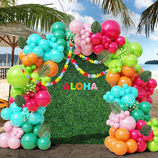 பிரகாசமான மற்றும் துடிப்பான கோடை வண்ணங்கள்: இந்த ஹவாய் பலூன் ஆர்ச் கிட் பிரகாசமான இளஞ்சிவப்பு, மஞ்சள், பச்சை, நீலம் மற்றும் ஆரஞ்சு போன்ற வெப்பமண்டல வண்ணங்களைக் கொண்டுள்ளது, இது ஒரு கலகலப்பான பார்ட்டி சூழலை உருவாக்குகிறது. ஹவாய் பலூன் வளைவுகள் உட்புற அல்லது வெளிப்புற பலூன் வளைவுகள், புகைப்பட பின்னணிகள் அல்லது மைய அலங்காரங்கள் போன்றவற்றைப் பயன்படுத்துவதற்கு ஏற்றது.