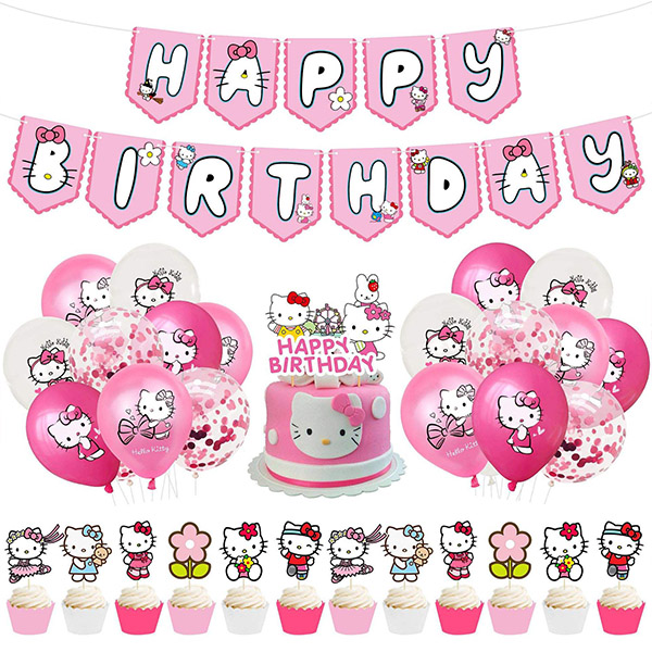 2) பேப்பர் பேனர்: "ஹேப்பி பர்த்டே" என்று எழுதப்பட்ட ஹலோ கிட்டி பேனர்கள் கார்ட்டூன் பிங்க் கார்டுகளில் ஒட்டுவதற்கு ஏற்றது. அட்டை மிகவும் தடிமனாகவும் உறுதியானதாகவும் இருக்கும். அவை உங்கள் நிகழ்வுக்கு மகிழ்ச்சியான சூழலைச் சேர்க்கின்றன, அது நீடித்ததை உறுதி செய்கிறது. கவனமாக வடிவமைக்கப்பட்டு, அவை ஆர்வத்தைத் தூண்டுகின்றன.