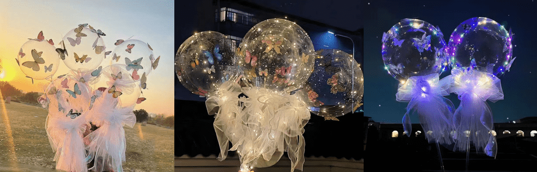 பலூன் கருவிகள் (பல்வேறு அளவுகளின் சாதாரண பலூன்கள், பலூன் சங்கிலிகள் மற்றும் இன்ஃப்ளேட்டர்கள் உட்பட) திருவிழாக்கள் மற்றும் கொண்டாட்டங்கள் போன்ற அலங்காரத்திற்கான முக்கியமான தயாரிப்புகள், ஆனால் ஒரு கிட் தடிமனாகவும் கனமாகவும் இருக்கும். வெற்று-அவுட் பட்டாம்பூச்சி ஸ்டிக்கர்கள் தொகுதி அலங்கார மற்றும் உள்ளூர் கவனம் செலுத்துவதன் மூலம் தளவமைப்பு நிலைகளை வளப்படுத்தலாம், இதனால் பெரிய அளவிலான தளவமைப்பு மிகவும் நெகிழ்வானது.