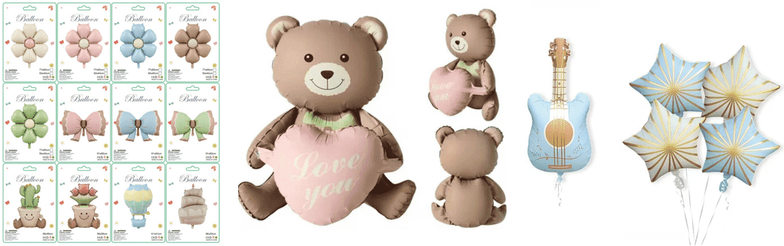 பலூன் ரீத் செட், பிறந்தநாள் விழா அலங்காரம், பேக்கேஜிங் போன்றவற்றுடன் அலுமினிய ஃபாயில் பலூன் செட் உட்பட, ஃபாயில் பலூன் பேட்டர்ன் மற்றும் சைஸ் மாடலிங் தனிப்பயனாக்கத்தை நாங்கள் வழங்குகிறோம்.