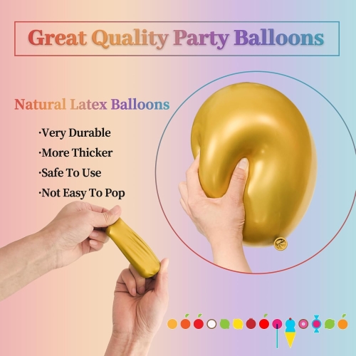 உயர்தர உலோக வண்ண பலூன்கள் சிறிய செட் தடிமனான, உயர்-எலாஸ்டிக் லேடெக்ஸைப் பயன்படுத்துகின்றன. அவை கண்ணாடி போன்ற பளபளப்பான மேற்பரப்பைக் கொண்டுள்ளன. ஒளி அவற்றிலிருந்து பிரதிபலிக்கிறது. இது ஒரு பணக்கார, பளபளப்பான உலோக விளைவை உருவாக்குகிறது. வழக்கமான லேடெக்ஸ் பலூன்கள் தட்டையாகவும் மேட்டாகவும் இருக்கும். இந்த பலூன்கள் உயர்நிலையை உணர்கின்றன. அவைகளும் உடனே கண்ணில் படுகின்றன.