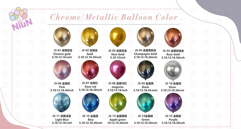 நிறம்: உலோக பலூன்கள் 15 வண்ணங்களைக் கொண்டுள்ளன. முடிவில்லாத காட்சி விளைவுகளுக்கு நீங்கள் அவற்றை தாராளமாக கலக்கலாம்.