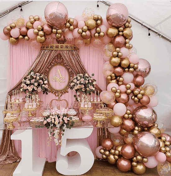 ரோஸ் தங்க பலூன் மாலை கிட் |