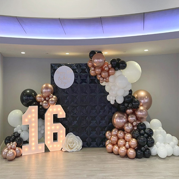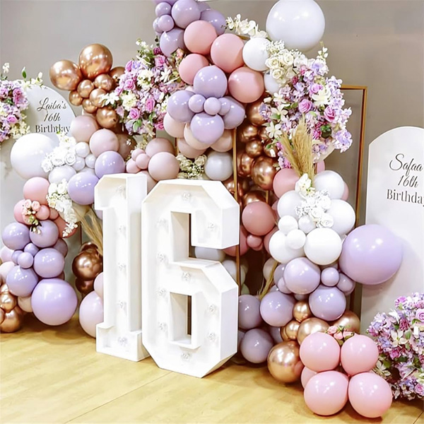 16 லெட் லைட் கொண்ட பலூன் மாலை:எங்கள் தொழிற்சாலை 16 வயது லெட் லைட் கொண்ட பலூன் மாலையையும் அறிமுகப்படுத்தியது. லெட் எண் விளக்குகள் சுற்றுச்சூழலுக்கு உகந்த பொருட்கள் ஏபிஎஸ் மற்றும் எல்இடி மூலம் பிரகாசமான மற்றும் நீடித்த லைட்டிங் விளைவுகளை வழங்குகின்றன. இருட்டில் ஒளிரும் எண்கள் மற்றும் எழுத்துக்களுடன் LED விளக்குகள். மென்மையான விளக்குகள் ஒரு தளர்வான மற்றும் வசதியான சூழ்நிலையை உருவாக்குகிறது மற்றும் எந்த அறைக்கும் ஒரு தனித்துவமான அழகை சேர்க்கிறது. அவை சுயாதீனமாக காட்டப்படலாம் அல்லது சுவரில் தொங்கவிடப்படும், மேன்டலில் அல்லது நிகழ்வுகள் அல்லது கொண்டாட்டங்களின் போது பயன்படுத்த வரவேற்பு பகுதியில் வைக்கப்படும். பலூன் மாலை வளைவுகளுடன் கூடிய எல்இடி எண் விளக்குகள், விருந்தளிக்கும் சூழ்நிலையை உருவாக்குவதற்கு ஏற்றது, இது உங்கள் 16வது பிறந்தநாளில் மறக்க முடியாத விழா உணர்வைச் சேர்க்கும் தனித்துவமான மற்றும் மறக்க முடியாத புகைப்படங்களை எடுப்பதற்கு இன்றியமையாத முட்டுக்கட்டையாகும்.
