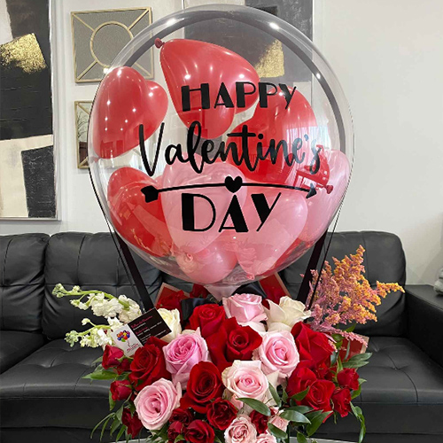 காதலர் தின பூங்கொத்து போபோ பலூனை ஹாட் ஏர் பலூன் வடிவில் அதன் உடலில் ஸ்டிக்கர்களுடன் உருவாக்கியுள்ளோம். எங்கள் தொழிற்சாலையில் தயாரிக்கப்படும் பலூன் நிரப்பும் இயந்திரத்துடன் நீங்கள் அதை பொருத்தலாம், பலூனில் இளஞ்சிவப்பு ரோஜாக்கள், நித்திய பூங்கொத்துகள் அல்லது அழகான பொம்மைகளை வைத்து, பரிசு பெட்டியில் காதல் மற்றும் ஆச்சரியத்தை வைக்கலாம். உங்கள் துணைக்கு காதலர் தின ஆச்சரியப் பரிசாக அல்லது டேபிள் அலங்காரமாக, இந்த காதலர் தின போபோ பலூன் ஒரு பரிசாகவும், முழுமையான சூழலைக் கொண்ட வீட்டு அலங்காரமாகவும் இருக்கிறது.
