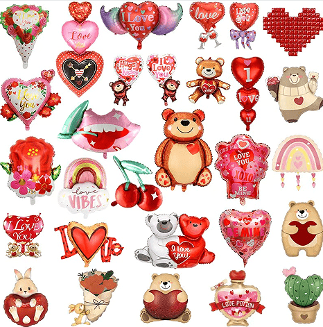 காதலர் தின பலூன்கள் காதல், காதல் மற்றும் சடங்குகளைச் சுற்றி வடிவமைக்கப்பட்டுள்ளன. முக்கிய வகைகளை காதலர் தின இதய வடிவிலான படலம் பலூன்கள், காதலர் தின பாணி படலம் பலூன்கள், காதலர் தின கடிதம் படலம் பலூன்கள் என பிரிக்கலாம் மற்றும் தனிப்பயனாக்கலாம்காதலர் தின பலூன் மாலை செட்மற்றும் பல.