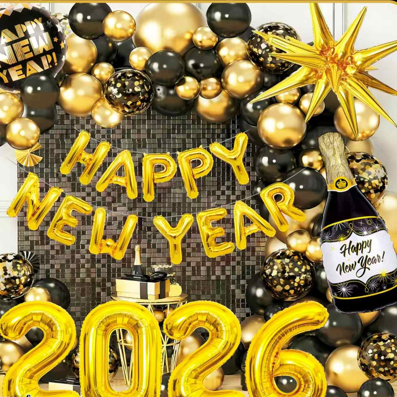 புத்தாண்டு கருப்பொருள் தொகுப்பைப் பற்றி சிந்தியுங்கள். இதில் ஷாம்பெயின் பாட்டில்கள் போல தோற்றமளிக்கும் ஃபாயில் பலூன்கள் உள்ளன. இதில் "2026" எண் பலூன்கள், நட்சத்திர அலங்கார பலூன்கள் மற்றும் பல உள்ளன. முக்கிய நிறங்கள் கருப்பு-தங்கம் அல்லது தங்கம்-வெள்ளை. புத்தாண்டு கொண்டாட்டம் நிறைந்தது. இது ஒரு ஆடம்பரமான மற்றும் சம்பிரதாய புத்தாண்டு விருந்து காட்சியை எளிதாக உருவாக்க முடியும்.